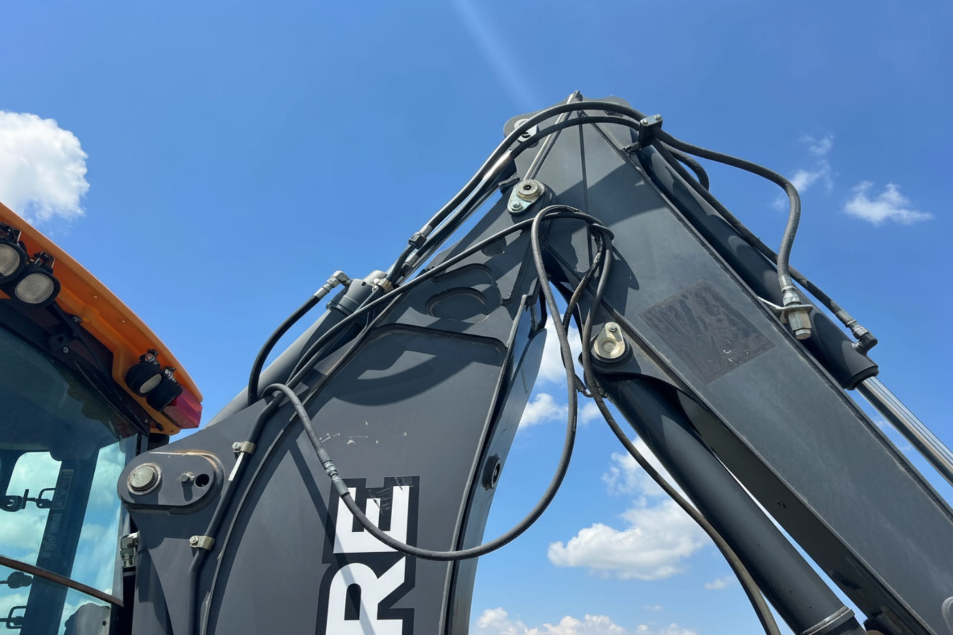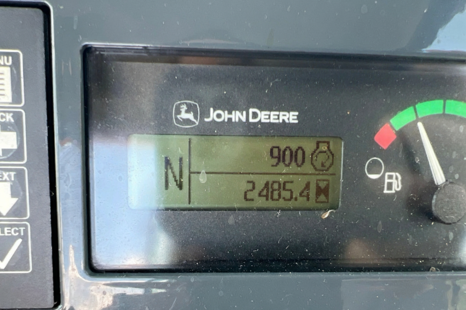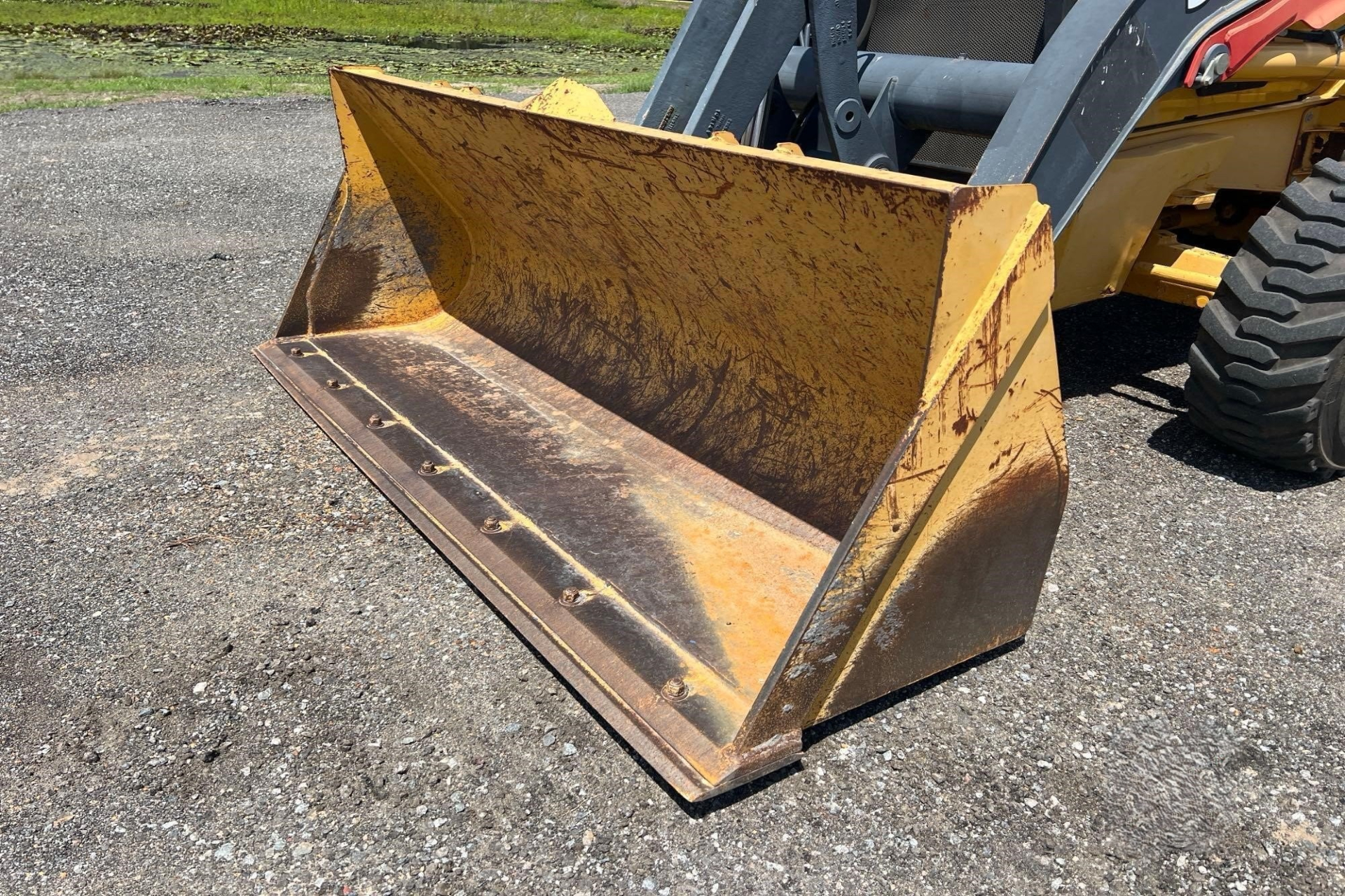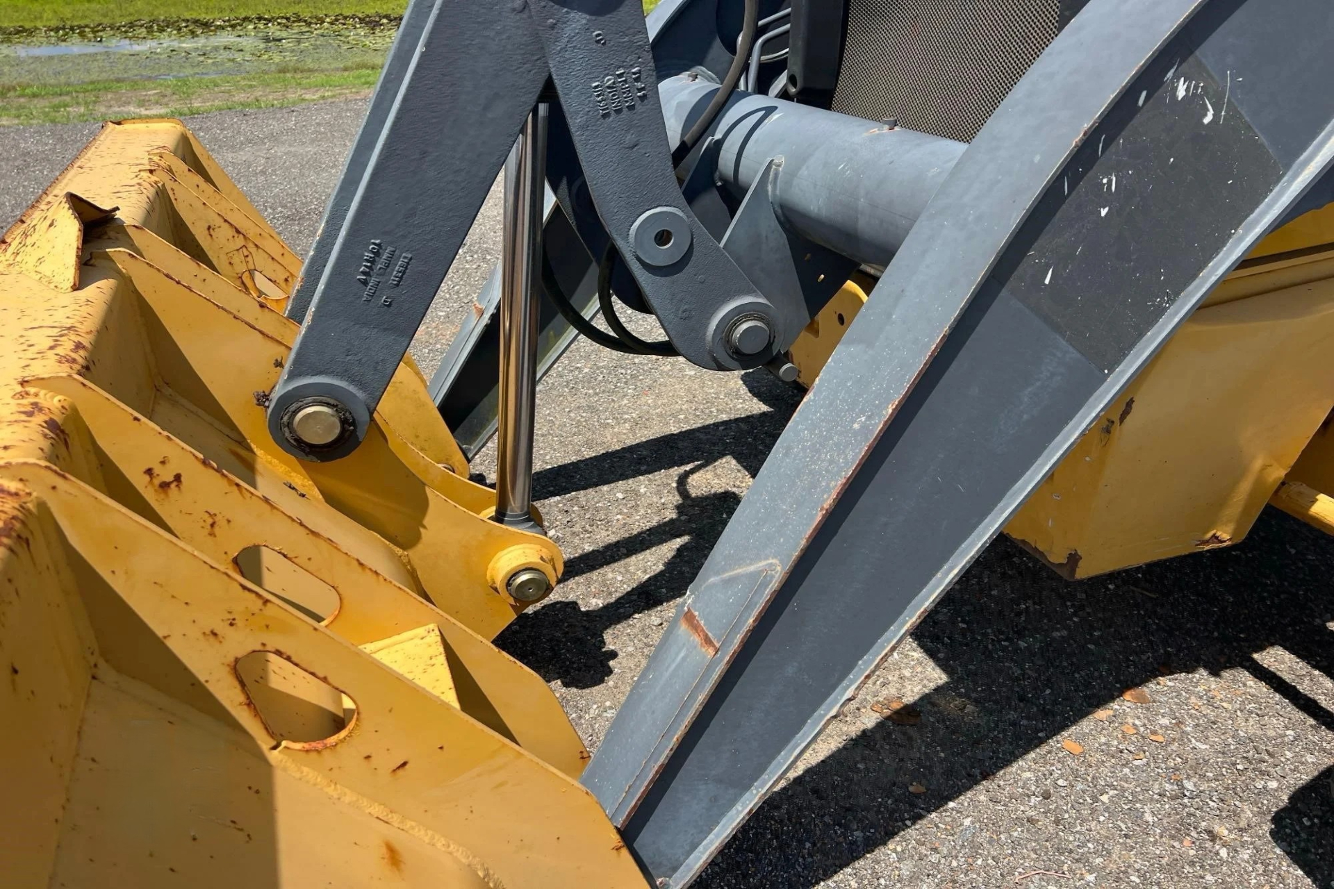 2015 John Deere 310K equipped with an enclosed cab, heat & A/C, 4-wheel drive, extendable dipper, and front quick coupler.